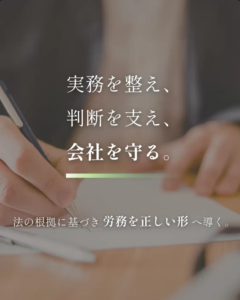 労務の悩みは、制度の知識だけでは解けません。現場の運用・会社の価値観・経営者の判断が、 ひとつにつながってはじめて「続く仕組み」になります。
